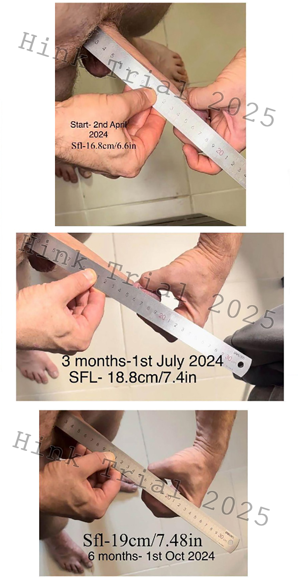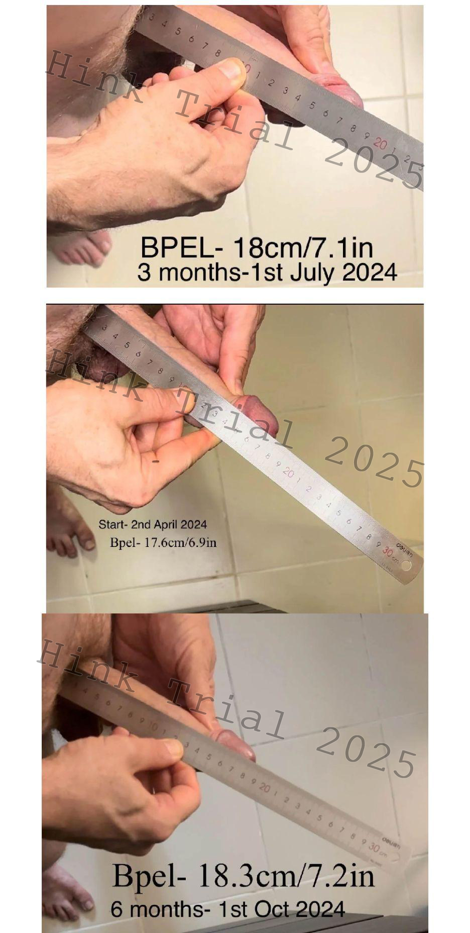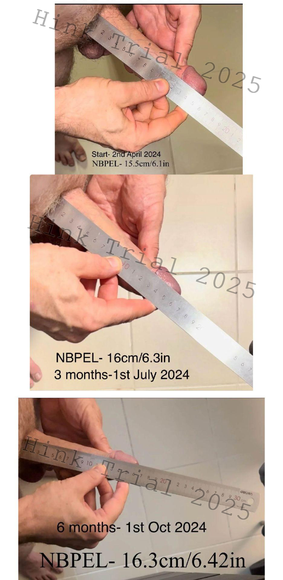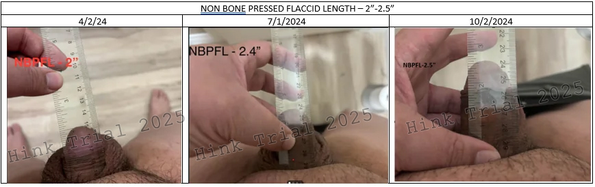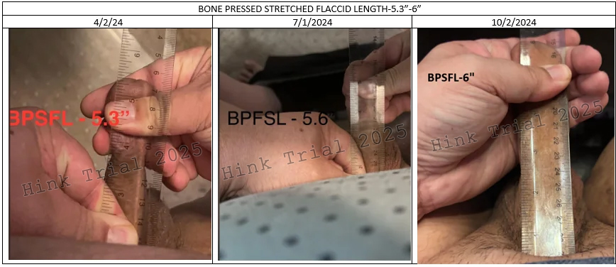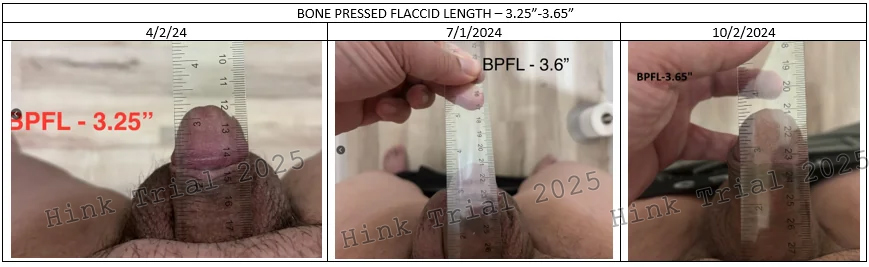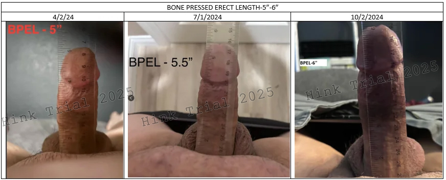 This study, titled “The Hink Trial,” was designed to address these limitations by providing the first systematic evaluation of non-surgical penile enhancement verified through standardized photographic documentation. It aims to demonstrate that significant increases in penile length and girth can be achieved without the need for invasive procedures or substantial financial burden.