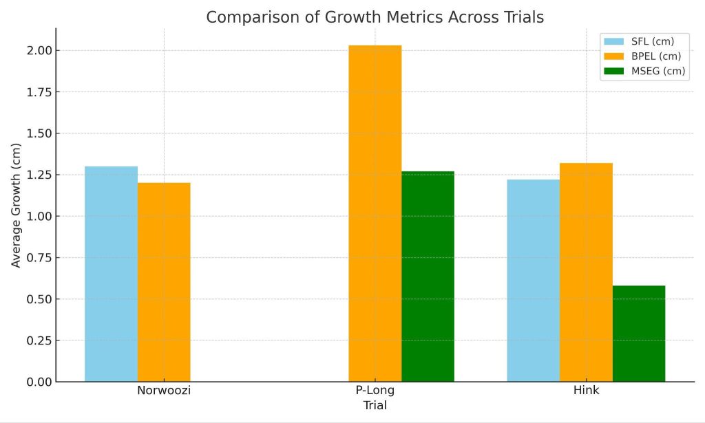 In contrast, the Hink Trial demonstrated comparable improvements, with mean gains of 1.22 cm (0.48 inches) in SFL, 1.32 cm (0.52 inches) in BPEL, and 0.58 cm (0.23 inches) in MSEG, achieved exclusively through non-invasive methods and documented with photographic evidence. Although the P-Long study reported larger mean changes, its reliance on invasive therapies and the absence of visual verification highlight the advantages of the accessible and transparent methodology employed in the Hink Trial.